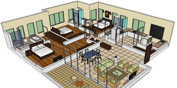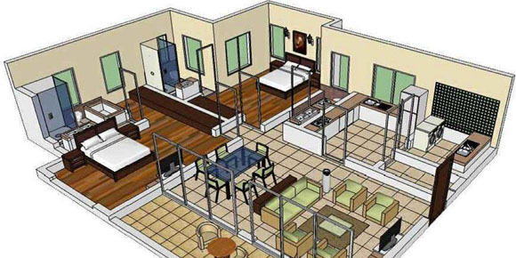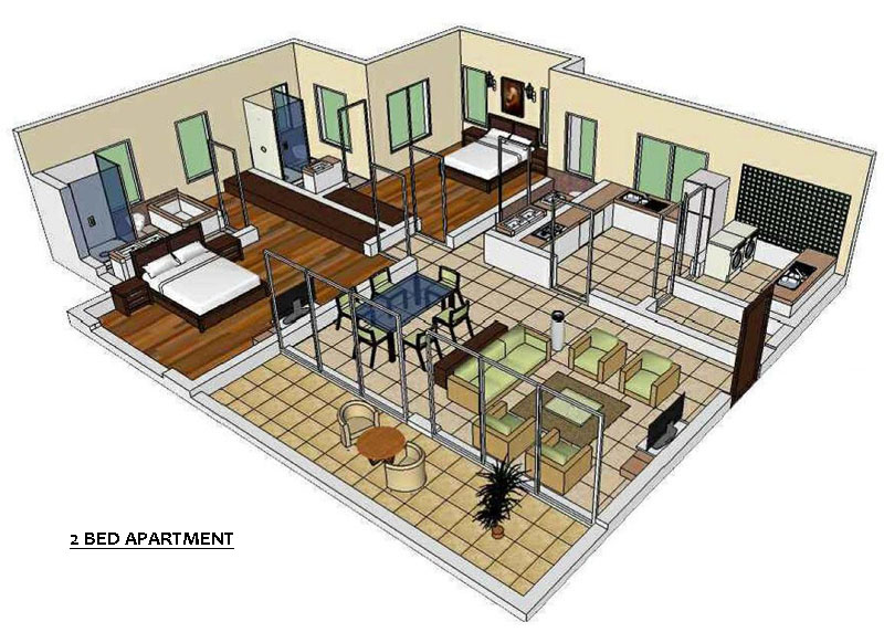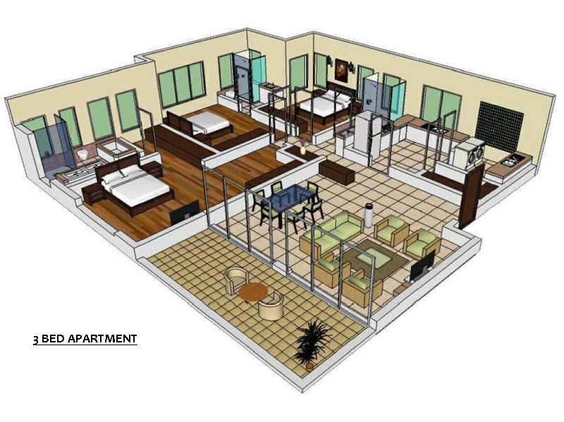 - Living and dining room will have large opening sliding doors with high quality iron grilles for additional security
