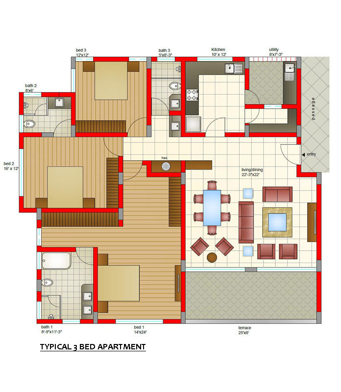 - Ground floor parkings for each apartment, with 2 reserved for each 3-bed apartment and 1 reserved for each 2-bed apartment and extra parkings for visitors