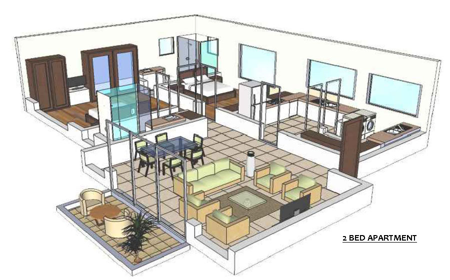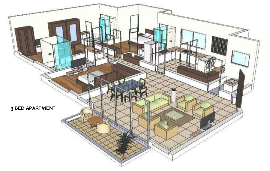 - Living and dining room will have large opening sliding doors with high quality iron grilles for additional security.