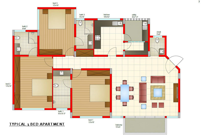 - Imported ceramic tiles in the kitchen, bathrooms, balcony and utility areas.